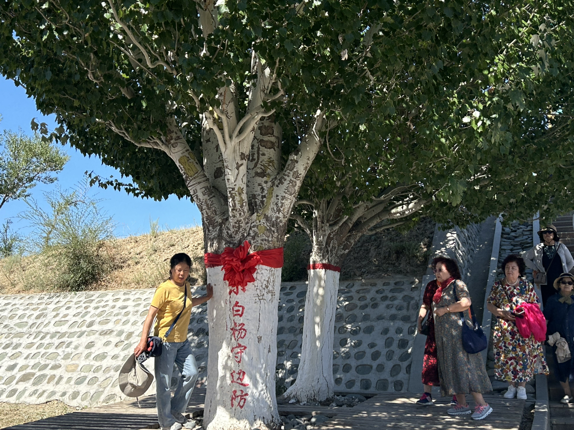 “當(dāng)年這里除了鐵絲網(wǎng)就是石頭山?!币娮C哨所變遷的兵團(tuán)職工蔣晶華回憶,官兵們住地窩子、啃干馕,卻始終像那棵白楊一樣“向下扎根”。如今,第二代哨樓旁的白楊樹已成參天大樹,樹干上“守衛(wèi)祖國(guó)”的刻字仍清晰可辨。