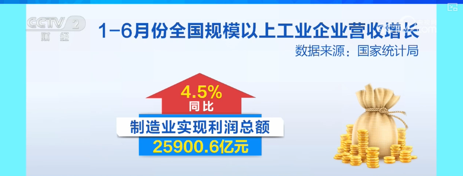 1—6月份,規(guī)模以上工業(yè)企業(yè)實(shí)現(xiàn)營(yíng)業(yè)收入66.78萬(wàn)億元,同比增長(zhǎng)2.5%。制造業(yè)實(shí)現(xiàn)利潤(rùn)總額25900.6億元,同比增長(zhǎng)4.5%。