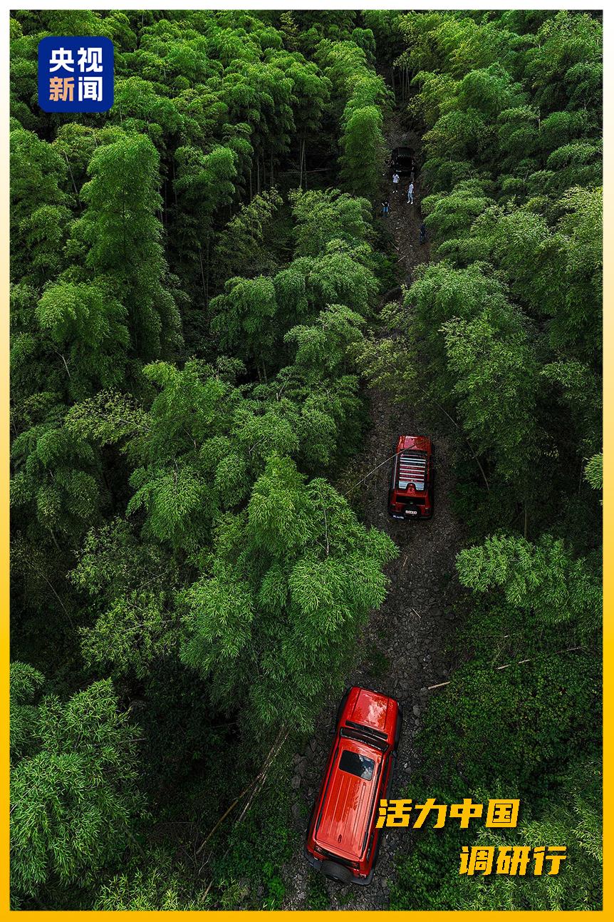 △車輛在安吉竹林間穿行