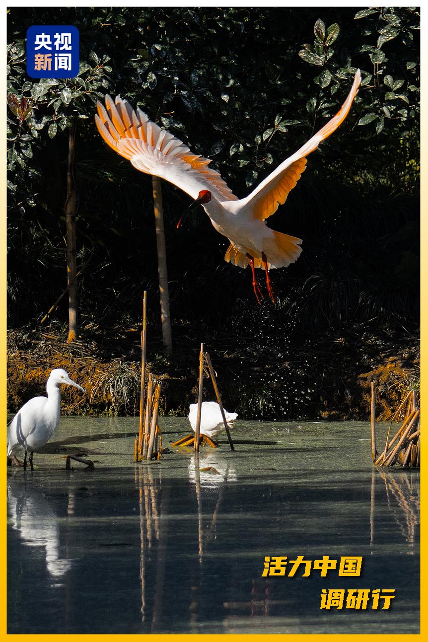 湖州德清通過退耕還湖、水體治理、濕地修復(fù),為朱鹮營造了理想棲息地。