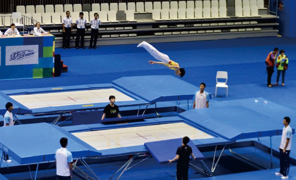 圖為蹦床項目比賽。圖片來自第12屆世運(yùn)會網(wǎng)上新聞中心