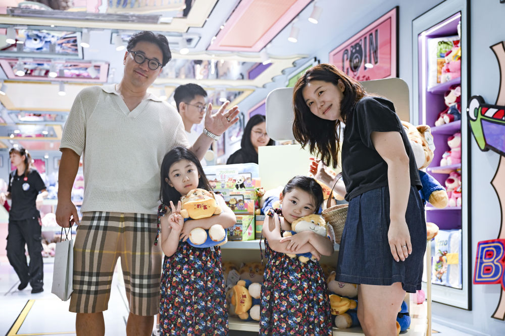 7月17日,韓國(guó)游客在位于上海市南京路步行街的一家潮玩店里購(gòu)物。新華社記者 唐斯琦 攝