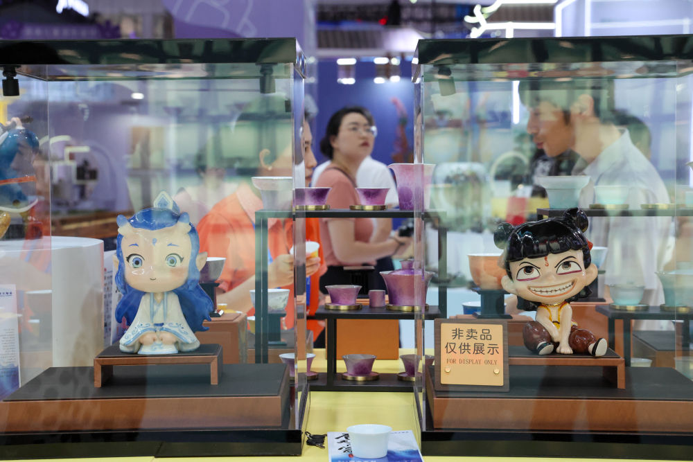 深圳,5月22日,文博會(huì)上展示的電影《哪吒》周邊產(chǎn)品。新華社記者 梁旭 攝