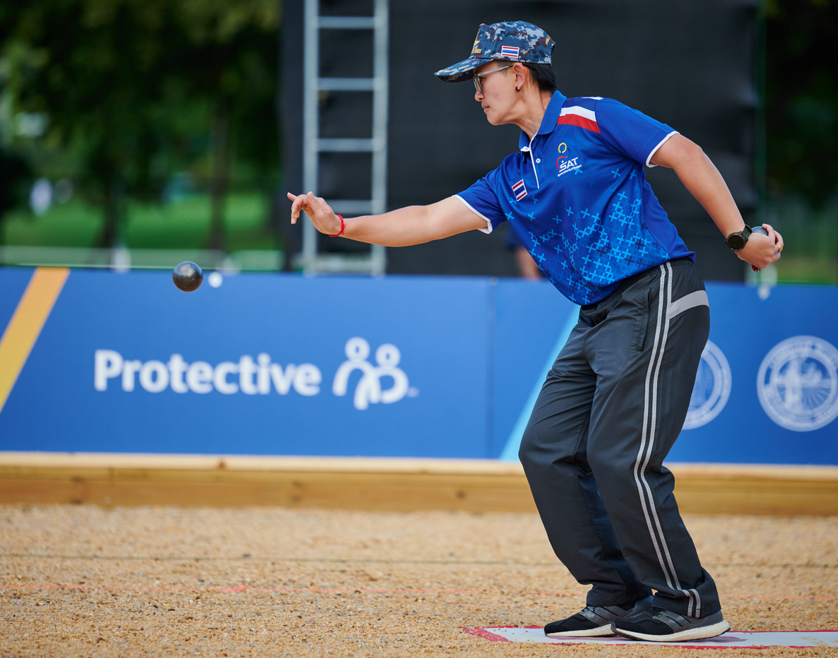 8月10日,美國隊選手甘農(nóng)在2025年成都世運會擲準飛盤比賽中。