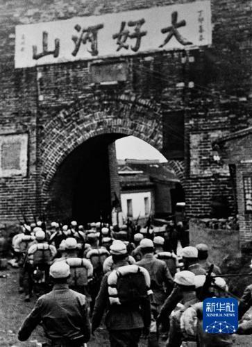 1945年,收復(fù)山海關(guān)的八路軍列隊通過城樓。張進(jìn)學(xué) 攝