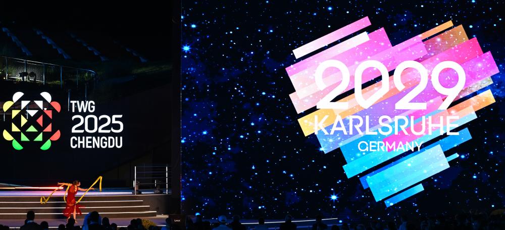 成都世運會組委會主席施小琳、國際世界運動會協(xié)會主席何塞·佩魯雷納先后致辭,向為本屆世運會圓滿成功作出貢獻(xiàn)的所有人員表示感謝。下屆世運會舉辦城市德國卡爾斯魯厄市市長弗蘭克·門特魯普致辭,熱情邀請全球賓客四年后相聚卡爾斯魯厄。