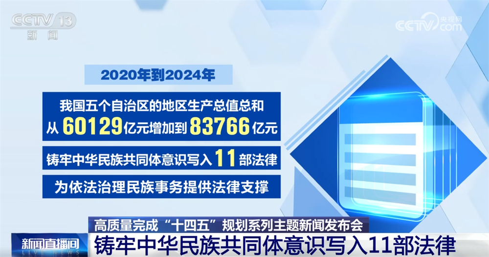 據了解,2020年到2024年,我國五個自治區(qū)的地區(qū)生產總值總和從60129億元增加到83766億元。鑄牢中華民族共同體意識寫入11部法律,為依法治理民族事務提供法律支撐。