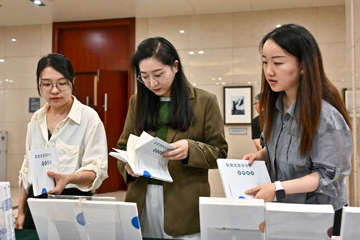 8月21日,與會(huì)者在北京舉行的“南海真相”系列智庫報(bào)告發(fā)布暨南海問題研討會(huì)現(xiàn)場翻閱“南海真相”系列智庫報(bào)告。新華社記者 李鑫 攝