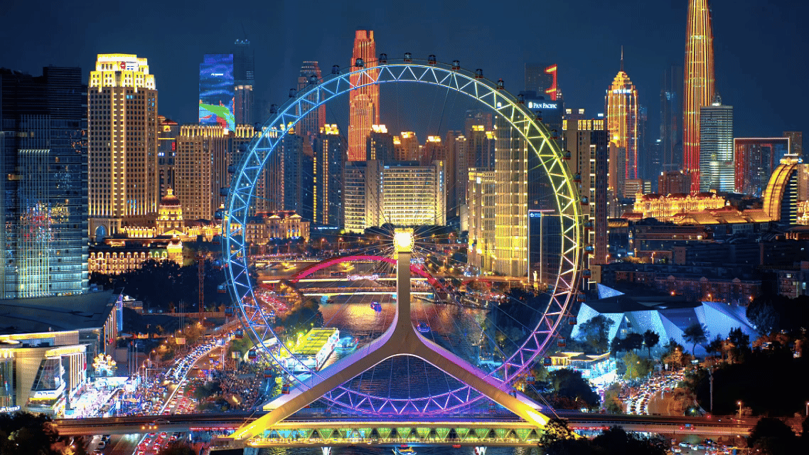這是2025年8月1日拍攝的天津海河夜景(無人機照片)。新華社記者 孫凡越 攝