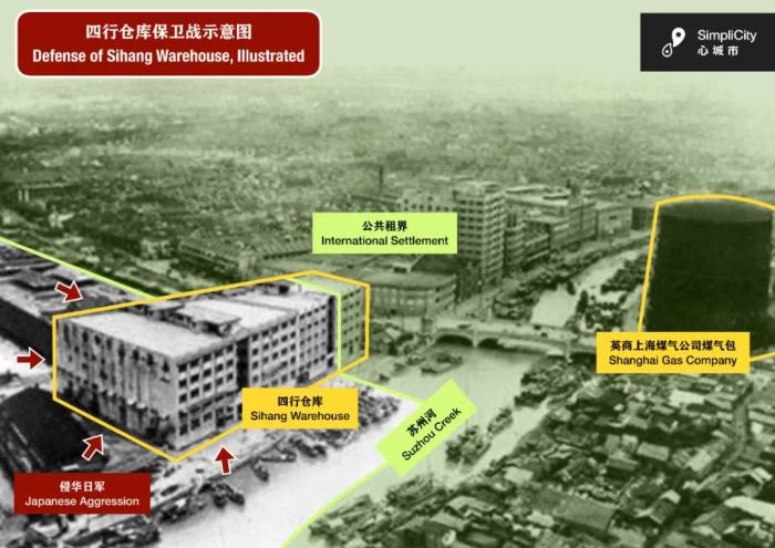 四行倉庫保衛(wèi)戰(zhàn)示意圖 心城市供圖