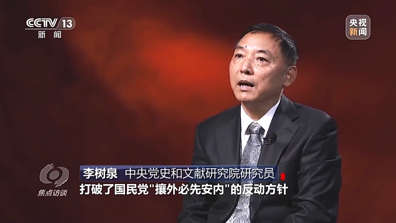 中央黨史和文獻(xiàn)研究院研究員 李樹泉:首先在政治上打破了國民黨“攘外必先安內(nèi)”的反動方針,形成了“地?zé)o分南北,人無分老幼”全國抗戰(zhàn)的局面,在軍事上就形成了敵后戰(zhàn)場和正面戰(zhàn)場的戰(zhàn)略配合,這樣就陷日本侵略者于人民戰(zhàn)爭的汪洋大海。