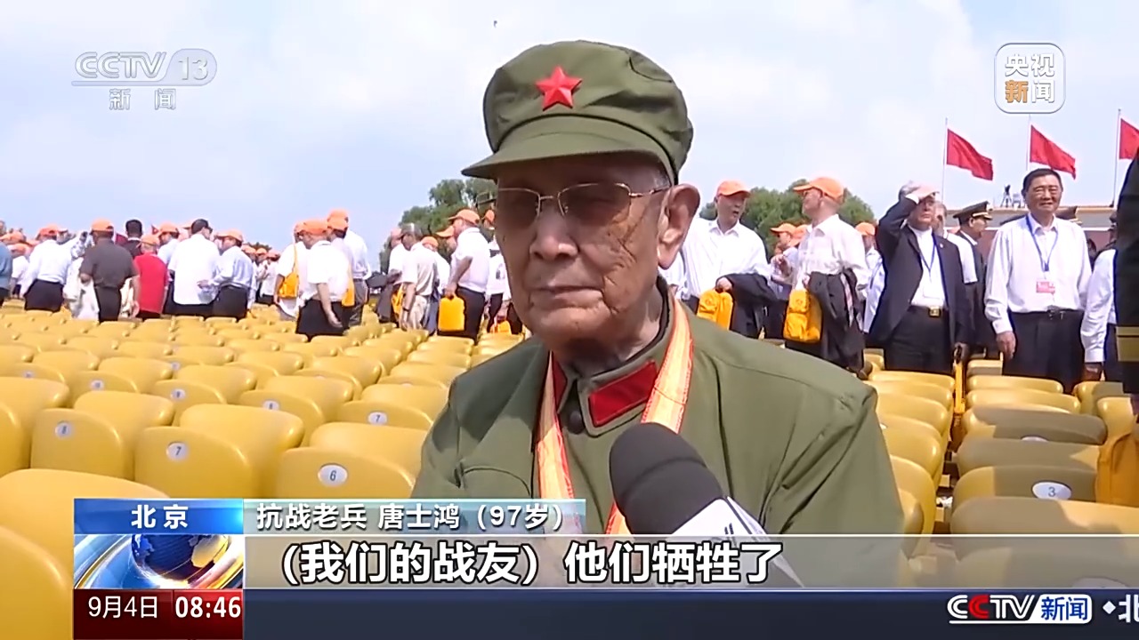 抗戰(zhàn)老兵 唐士鴻:我們的戰(zhàn)友他們犧牲了,沒有看到今天的勝利?,F(xiàn)在中國人民解放軍能夠戰(zhàn)勝一切的敵人,叫戰(zhàn)友在地下安息。前一代人故去了,下一代或者多代要把接力棒接下來繼續(xù)戰(zhàn)斗。不要戰(zhàn)爭,不要打仗,要過和平的生活。