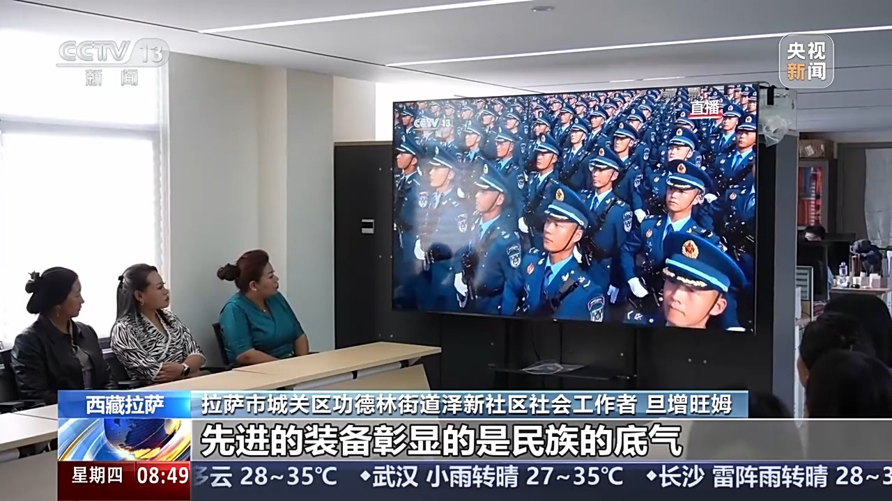 拉薩市城關(guān)區(qū)功德林街道澤新社區(qū)社會工作者 旦增旺姆:整齊的步伐踏出的是國家的力量,先進(jìn)的裝備彰顯的是民族的底氣,更讓我深刻感受到,強(qiáng)盛的祖國永遠(yuǎn)是我們最堅實的依靠。