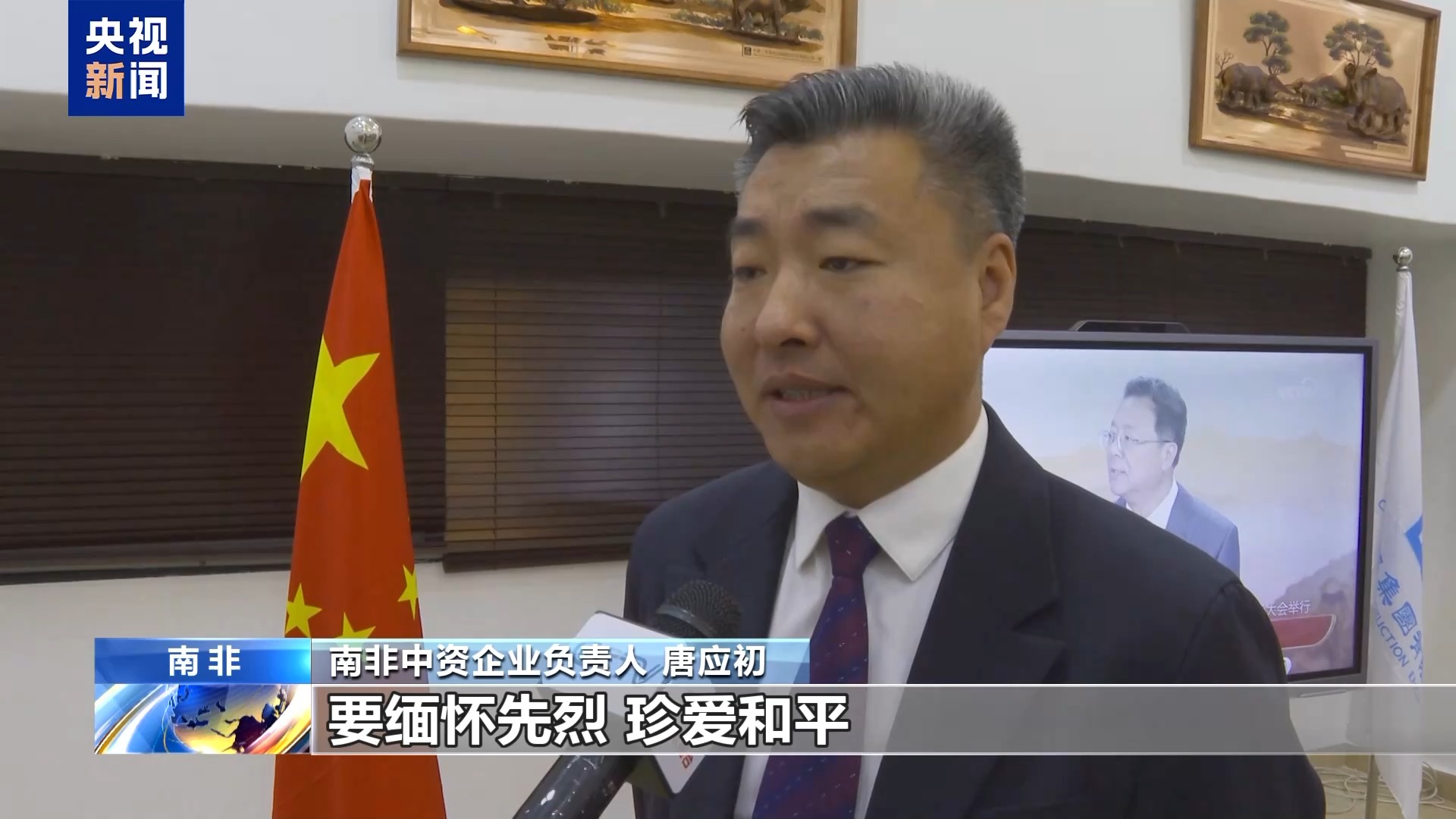 南非中資企業(yè)負(fù)責(zé)人 唐應(yīng)初:歷史告訴我們要緬懷先烈、珍愛和平。只有團(tuán)結(jié)才能勝利,只有合作才能共贏。作為海外建設(shè)者,今天我們胸懷祖國,奮戰(zhàn)一線。用實(shí)際行動證明,中國建設(shè)者攻堅(jiān)克難、敢打必勝。