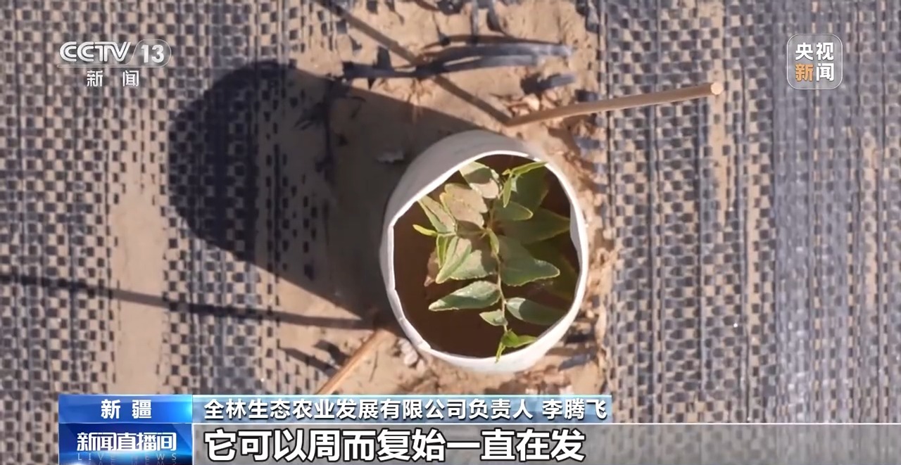 全林生態(tài)農(nóng)業(yè)發(fā)展有限公司負(fù)責(zé)人 李騰飛:沙塵暴這種摧殘之下,它可以周而復(fù)始一直在發(fā),只要它的根系不死,所以說我們稱它為“苗堅強”。