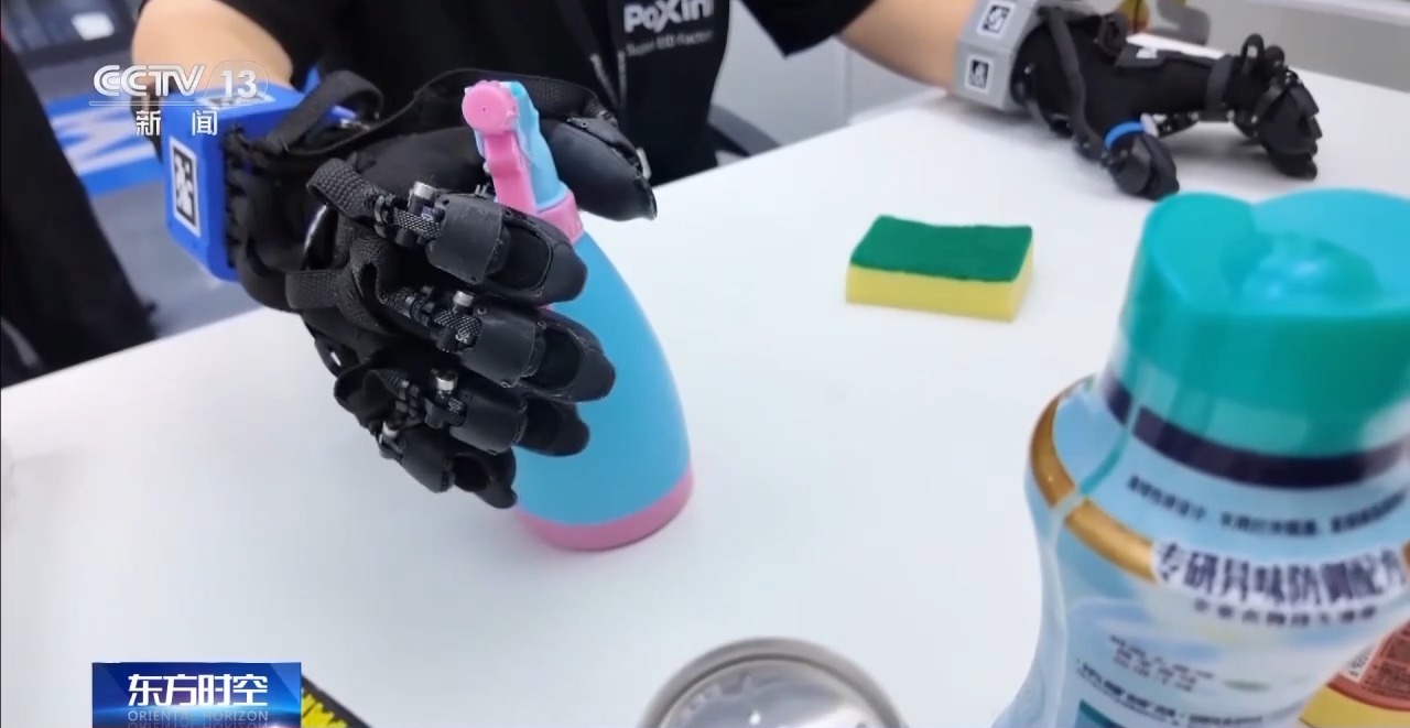 就像大語言模型依賴大規(guī)模文本語料,機(jī)器人要從“會(huì)想”邁向“會(huì)做”,同樣離不開海量真實(shí)世界的經(jīng)驗(yàn)數(shù)據(jù)做訓(xùn)練。能實(shí)時(shí)記錄觸覺、力覺和動(dòng)作細(xì)節(jié)的特制“數(shù)采手套”,就是連接真實(shí)世界和數(shù)據(jù)世界的介質(zhì)。