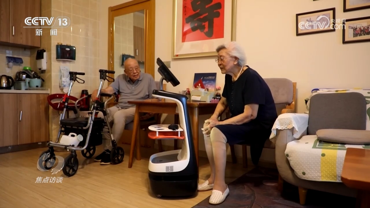 在深圳一家養(yǎng)老院,健康檢測機器人接到指令,就自己導(dǎo)航到老人身邊,提醒她測血壓。