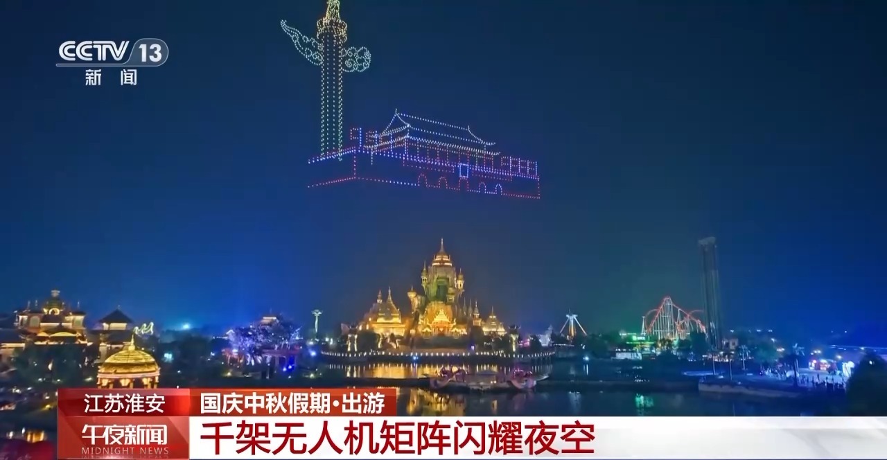 江蘇淮安:千架無(wú)人機(jī)矩陣閃耀夜空 “水幕+煙花”演繹雙重浪漫