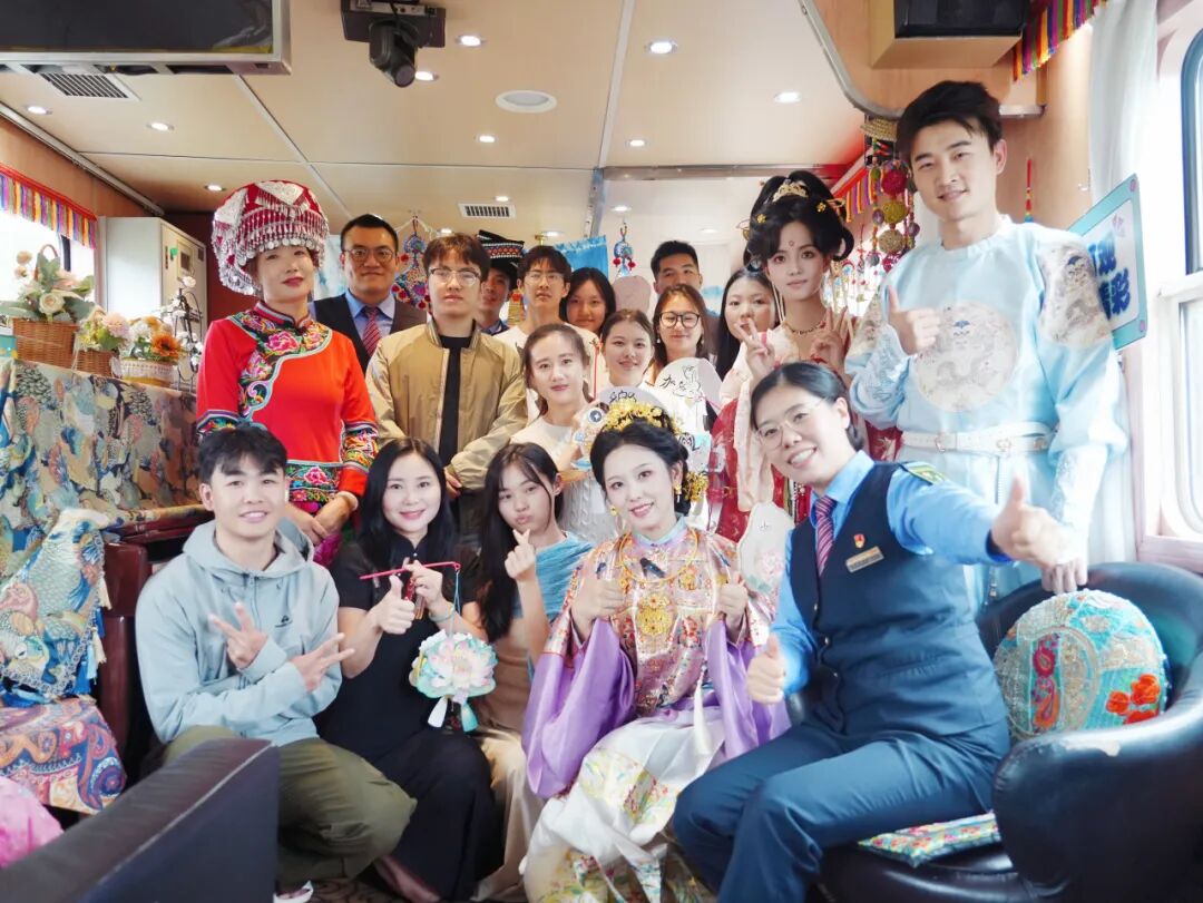 “旅客朋友們,歡迎乘坐本趟列車,中秋佳節(jié)將至,我們?cè)?號(hào)餐車準(zhǔn)備了特色活動(dòng),誠(chéng)邀大家共慶佳節(jié)!”列車長(zhǎng)李文雯的聲音通過廣播傳遍車廂。隨即《納西三部曲》旋律響起——身著絢麗民族服飾的列車員們,拉著周圍旅客一同跳起納西族舞蹈,歡快的節(jié)奏瞬間點(diǎn)燃車廂氣氛。