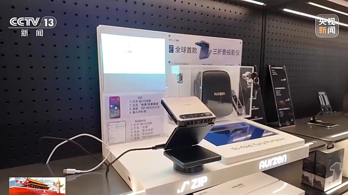 像這家店內(nèi)展示的三折疊投影儀、無(wú)弦吉他、教育機(jī)器人等多門(mén)類(lèi)新品,覆蓋了工作、生活、娛樂(lè)等全場(chǎng)景。記者發(fā)現(xiàn),店內(nèi)推出的大量AI新品,不僅功能更強(qiáng)大,操作起來(lái)也更加簡(jiǎn)單,讓老百姓能夠更方便地使用人工智能技術(shù)。