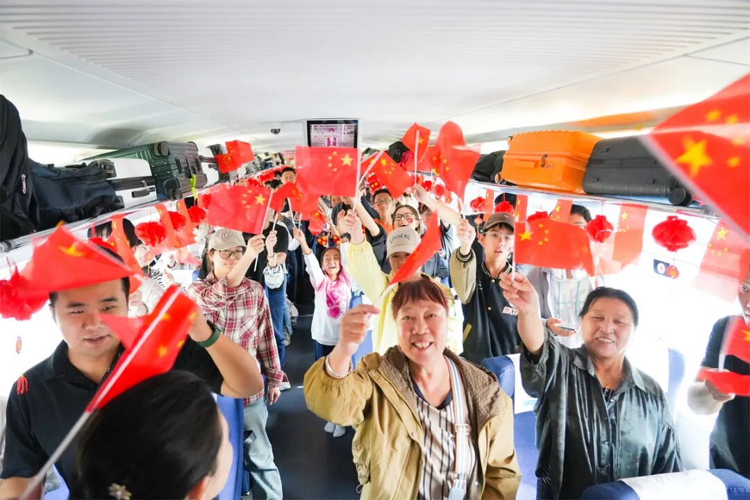 沈佳高鐵沈白段開通運(yùn)營(yíng)后,迎來(lái)第一個(gè)國(guó)慶中秋假期。長(zhǎng)春客運(yùn)段在長(zhǎng)春至青島北的G3565次列車上舉辦“‘我的鐵路風(fēng)景’——沈白高鐵通南北 雙節(jié)團(tuán)圓路更捷”列車聯(lián)歡活動(dòng)。