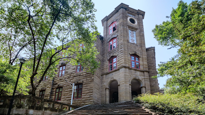 在工學院樓不遠處就是“七七抗戰(zhàn)大禮堂”,它因紀念“七七事變”而得名。1937年,國立中央大學(今南京大學 東南大學等高校前身)西遷入渝。重慶大學拿出約200畝土地供中央大學使用,中央大學主持修建了大禮堂。