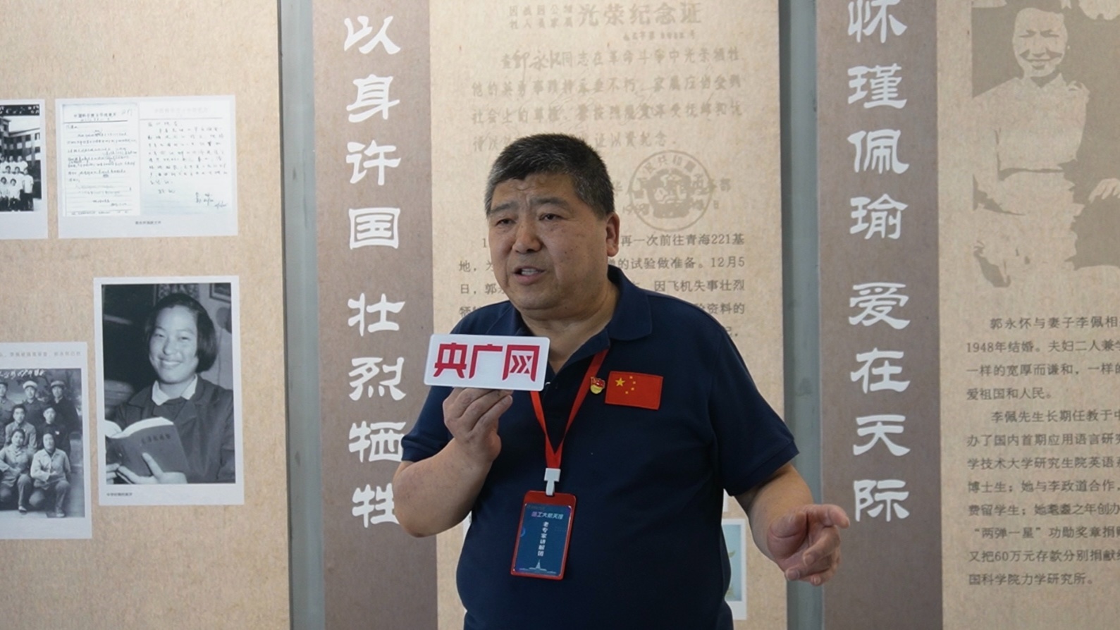 老專家志愿講解團(tuán)成員馮濤在講述“兩彈一星”功勛郭永懷事跡時(shí)動(dòng)情落淚(央廣網(wǎng)發(fā) 張文 攝)