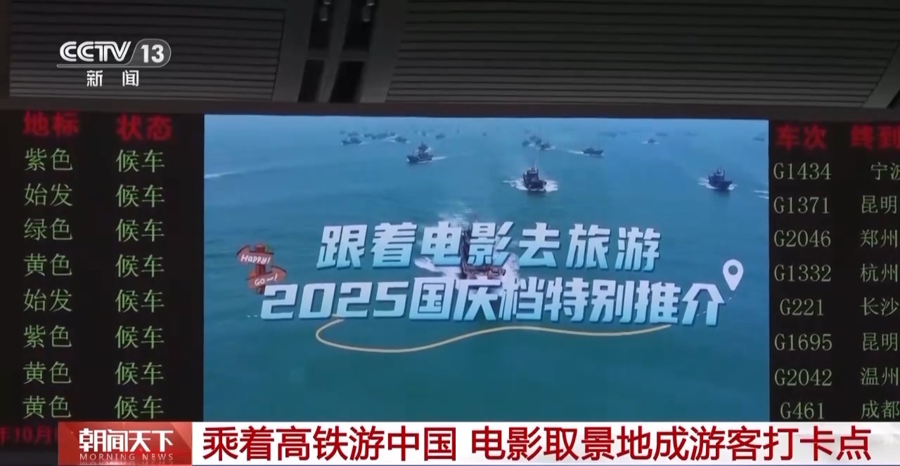 據了解,為持續(xù)推動“電影+”業(yè)態(tài)創(chuàng)新,國慶期間,在全國3000多個鐵路客運車站、4200多組動車組列車的車廂電視上,集中播放《跟著電影去旅游》等影旅主題推介視頻,不僅展示熱門電影取景地,還聯(lián)動多條鐵路旅游專線提供出行指引,邀請旅客體驗“鐵路+電影”的出行新方式。