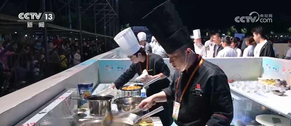 當(dāng)晚活動的最大亮點(diǎn)當(dāng)屬與開幕式同步啟動的吉尼斯世界紀(jì)錄挑戰(zhàn)——“一小時內(nèi)現(xiàn)場制作并發(fā)放朝天鍋數(shù)量最多”。朝天鍋是濰坊名吃,主要是湯配卷餅。三口直徑超2米的巨型朝天鍋熱氣升騰,20名專業(yè)廚師默契配合完成食材處理、卷餅制作。按照規(guī)則,需在一小時內(nèi)完成2500份卷餅的制作與發(fā)放。