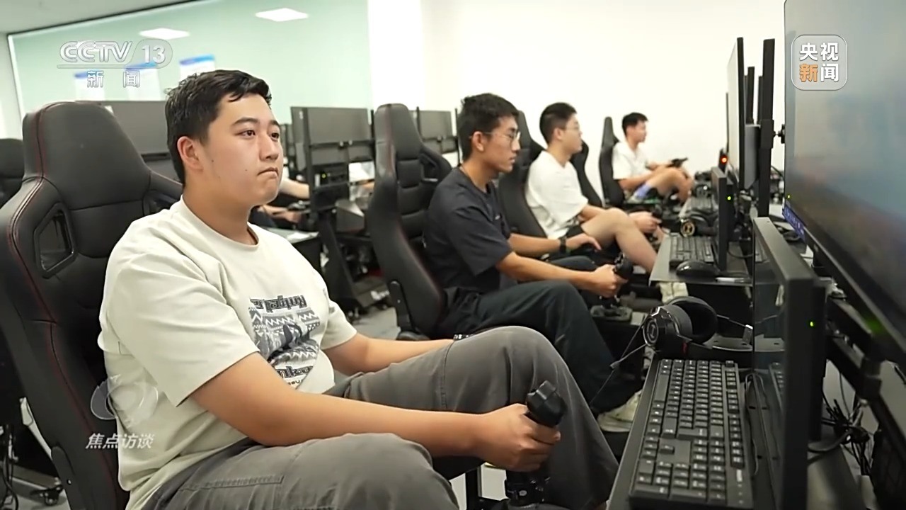 在北京航空航天大學(xué)沙河校區(qū),低空技術(shù)與工程專業(yè)的20多位新生正在進(jìn)行無人機(jī)起飛、側(cè)風(fēng)、順風(fēng)等五個(gè)階段的飛行模擬訓(xùn)練,通過實(shí)操來強(qiáng)化對(duì)標(biāo)準(zhǔn)起落航線以及飛行操控規(guī)范的掌握。由于是首次訓(xùn)練,同學(xué)們的手指在操縱桿上的調(diào)整略顯生澀,屏幕上的航線一度也偏離了預(yù)設(shè)軌跡。隨后在老師的實(shí)時(shí)指導(dǎo)下同學(xué)們逐段修正航向,慢慢對(duì)操作節(jié)奏熟悉起來。