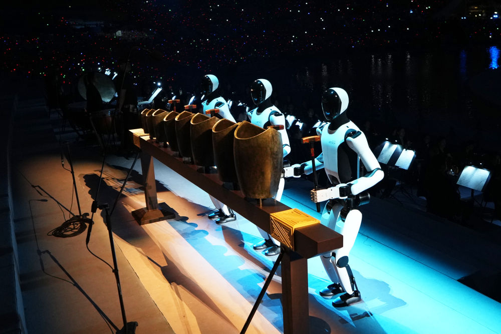 開幕式表演中的這一幕給觀眾留下深刻印象——三個(gè)工業(yè)人形機(jī)器人敲響千年前的中國古代樂器青銅句鑃,展開了一場(chǎng)未來與歷史的對(duì)話。談到此創(chuàng)意,十五運(yùn)會(huì)開幕式藝術(shù)總監(jiān)陳維亞表示:“這一點(diǎn)我們很自信,抓得好、抓得精彩、抓得有特色。”