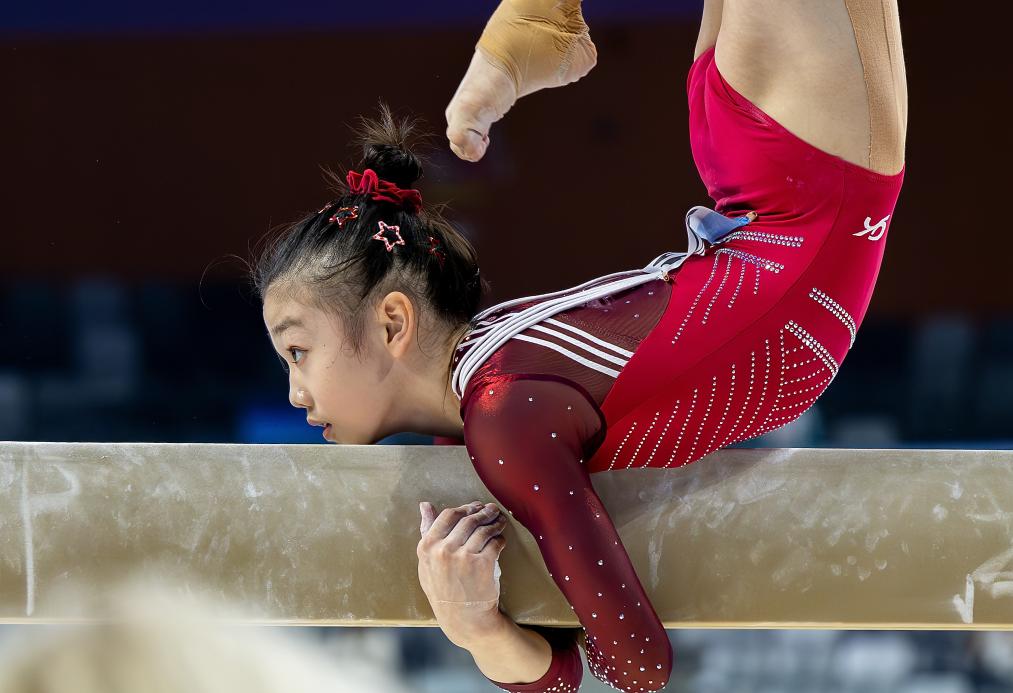 11月11日,廣東隊(duì)選手柯沁沁在平衡木比賽中。