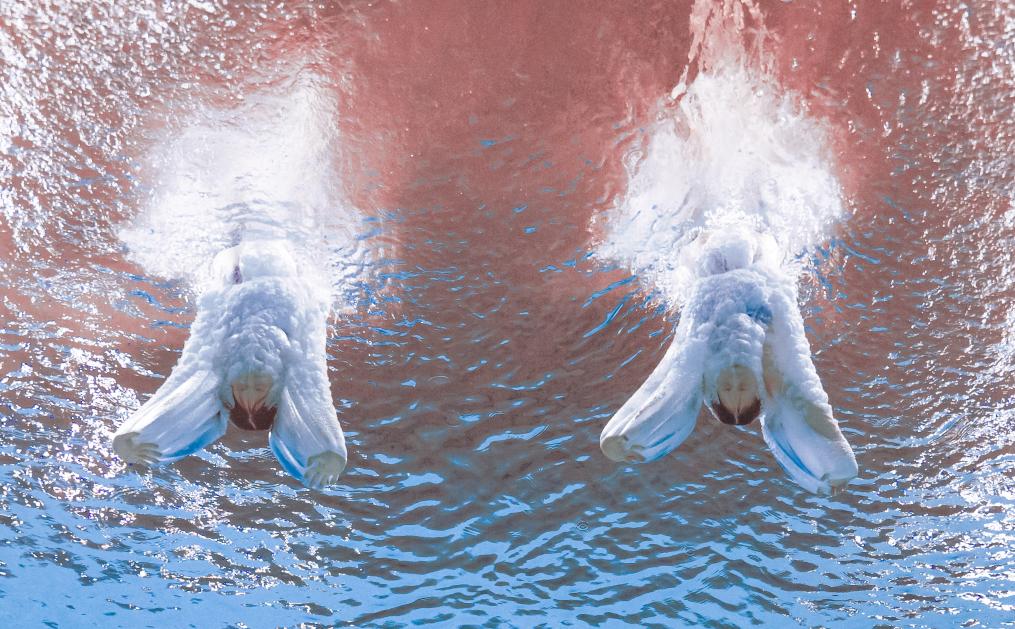 11月6日,上海隊(duì)組合陳芋汐/掌敏潔在女子雙人10米跳臺(tái)決賽中。