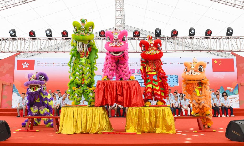 6月1日,在香港舉辦的第三屆“家鄉(xiāng)市集嘉年華”開幕式上,演員在表演舞獅。