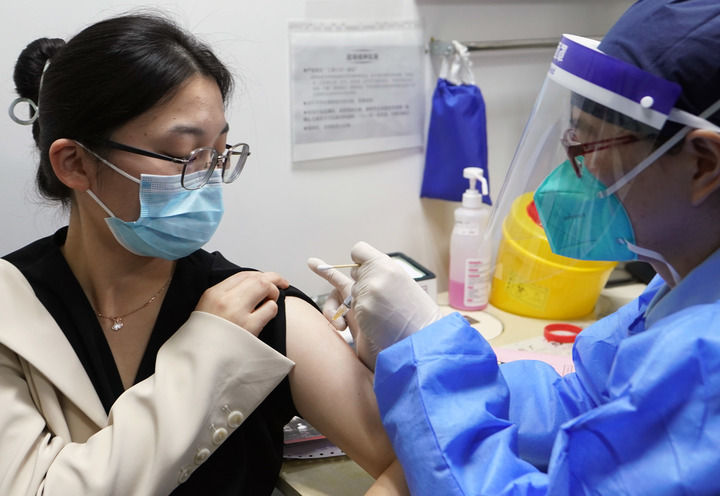一名女士在復(fù)旦大學(xué)附屬婦產(chǎn)科醫(yī)院接種九價(jià)HPV疫苗(2022年11月11日攝)。新華社記者 劉穎 攝