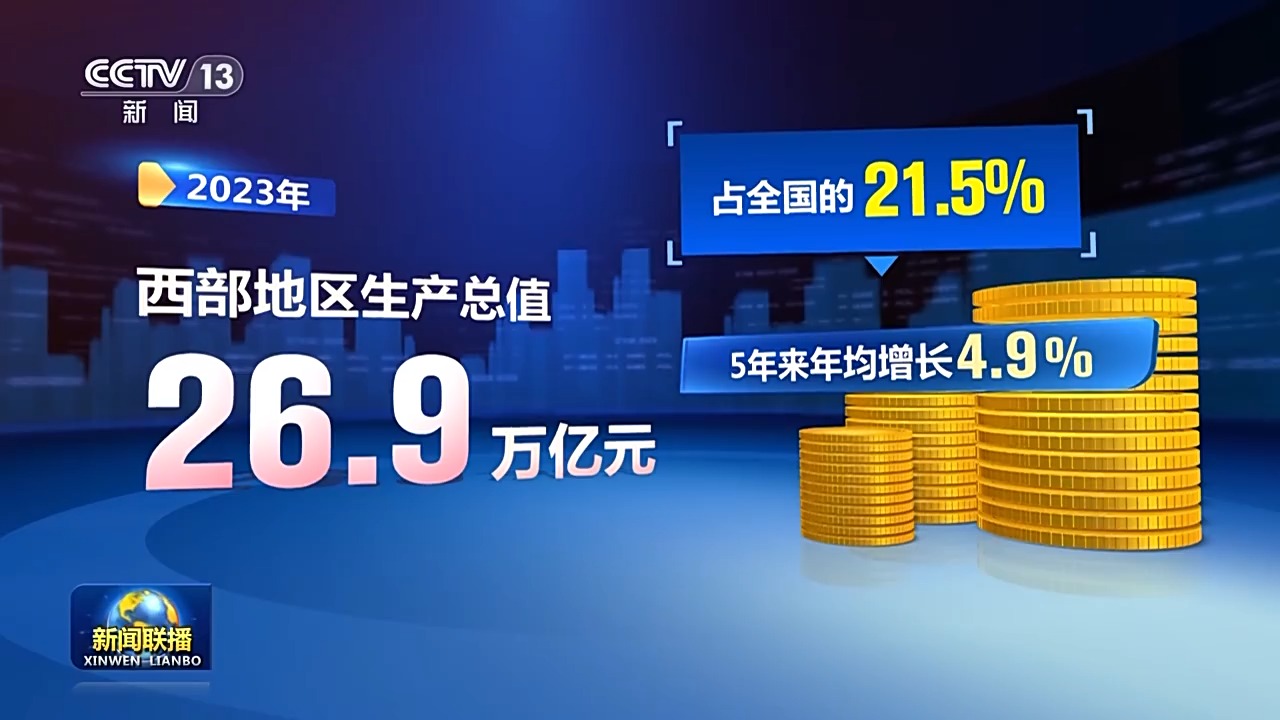 黨的十八大以來,習(xí)近平總書記考察調(diào)研的足跡遍布西部12個(gè)省區(qū)市,為新時(shí)代西部地區(qū)發(fā)展把脈定向、擘畫藍(lán)圖。黨的二十大報(bào)告提出,推動(dòng)西部大開發(fā)形成新格局。沿著總書記指引的方向,西部地區(qū)抓重點(diǎn)、補(bǔ)短板、強(qiáng)弱項(xiàng),經(jīng)濟(jì)社會(huì)發(fā)展取得重大歷史性成就。國家發(fā)展改革委等部門數(shù)據(jù)顯示,2023年,西部地區(qū)生產(chǎn)總值26.9萬億元,占全國的21.5%,5年來年均增長4.9%。