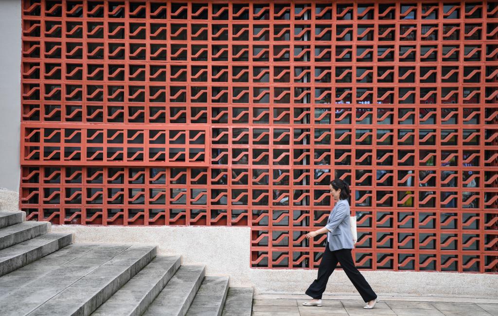 2023年4月28日,在竣工亮相的民主村片區(qū)城市更新項(xiàng)目(一期),人們?cè)谝惶幑部臻g休息(無人機(jī)照片)。