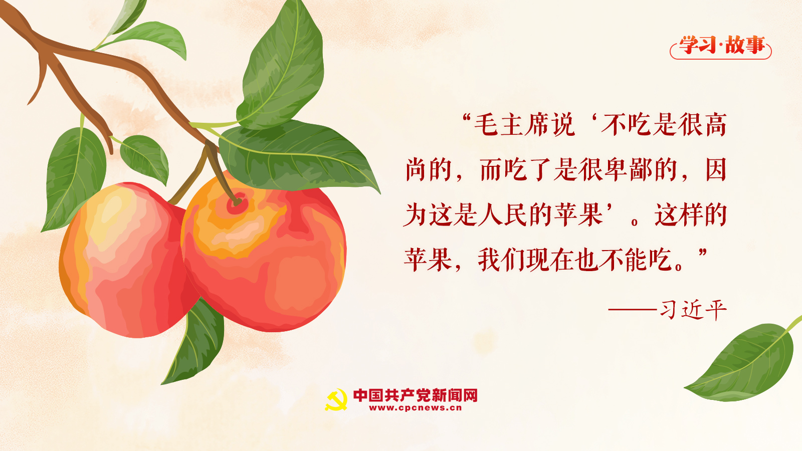 “毛主席說‘不吃是很高尚的,而吃了是很卑鄙的,因?yàn)檫@是人民的蘋果’。這樣的蘋果,我們現(xiàn)在也不能吃。”習(xí)近平總書記意味深長(zhǎng)地說。