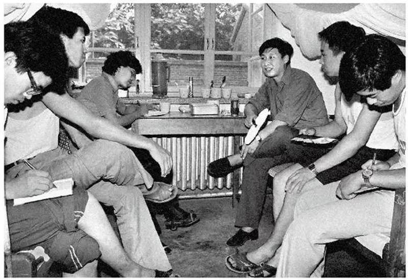 1984年7月29日,習(xí)近平與中國人民大學(xué)暑期社會(huì)實(shí)踐團(tuán)成員在正定縣政府招待所宿舍座談。