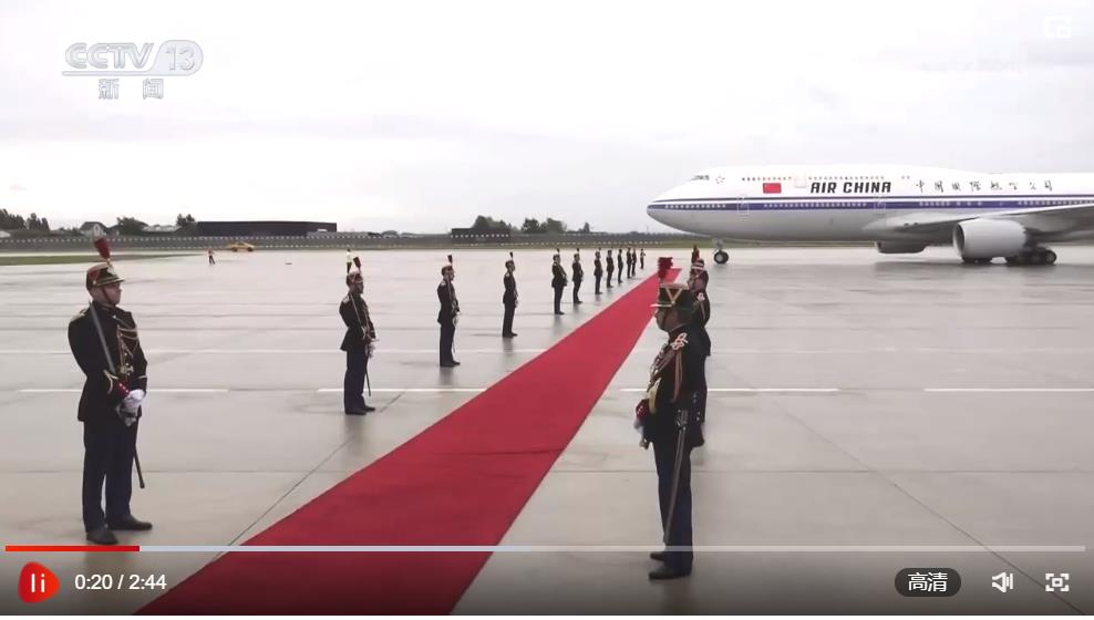當?shù)貢r間5月5日下午,國家主席習近平乘專機抵達巴黎,應法蘭西共和國總統(tǒng)馬克龍邀請,對法國進行國事訪問。