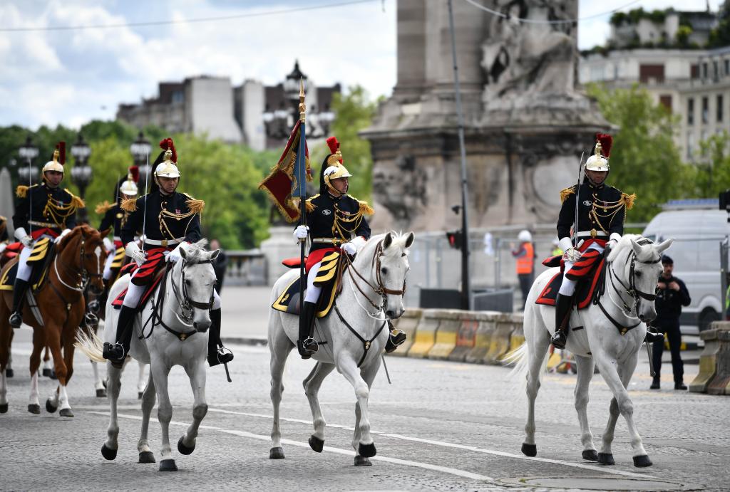 歡迎儀式后,習近平和夫人彭麗媛在共和國衛(wèi)隊148名騎兵組成的禮兵馬隊和摩托車隊護衛(wèi)下,乘車前往愛麗舍宮。