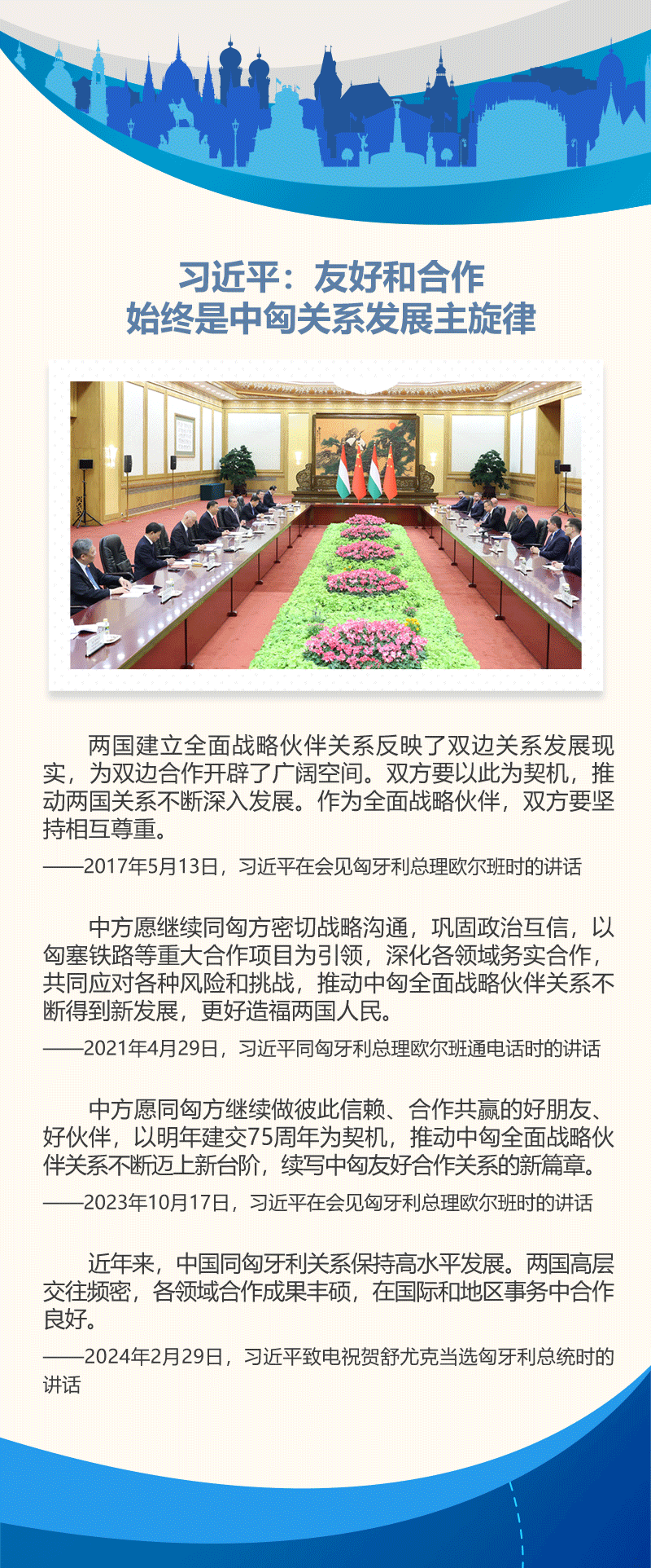 中國與匈牙利的傳統(tǒng)友誼源遠流長。建交75年來,雙方在國際事務中相互支持、密切配合。近年來,在兩國領(lǐng)導人的戰(zhàn)略引領(lǐng)下,中匈關(guān)系始終保持高水平發(fā)展。雙方政治互信不斷加深,互利合作成果豐碩,人文交流豐富多彩,在國際和地區(qū)事務中協(xié)作良好。