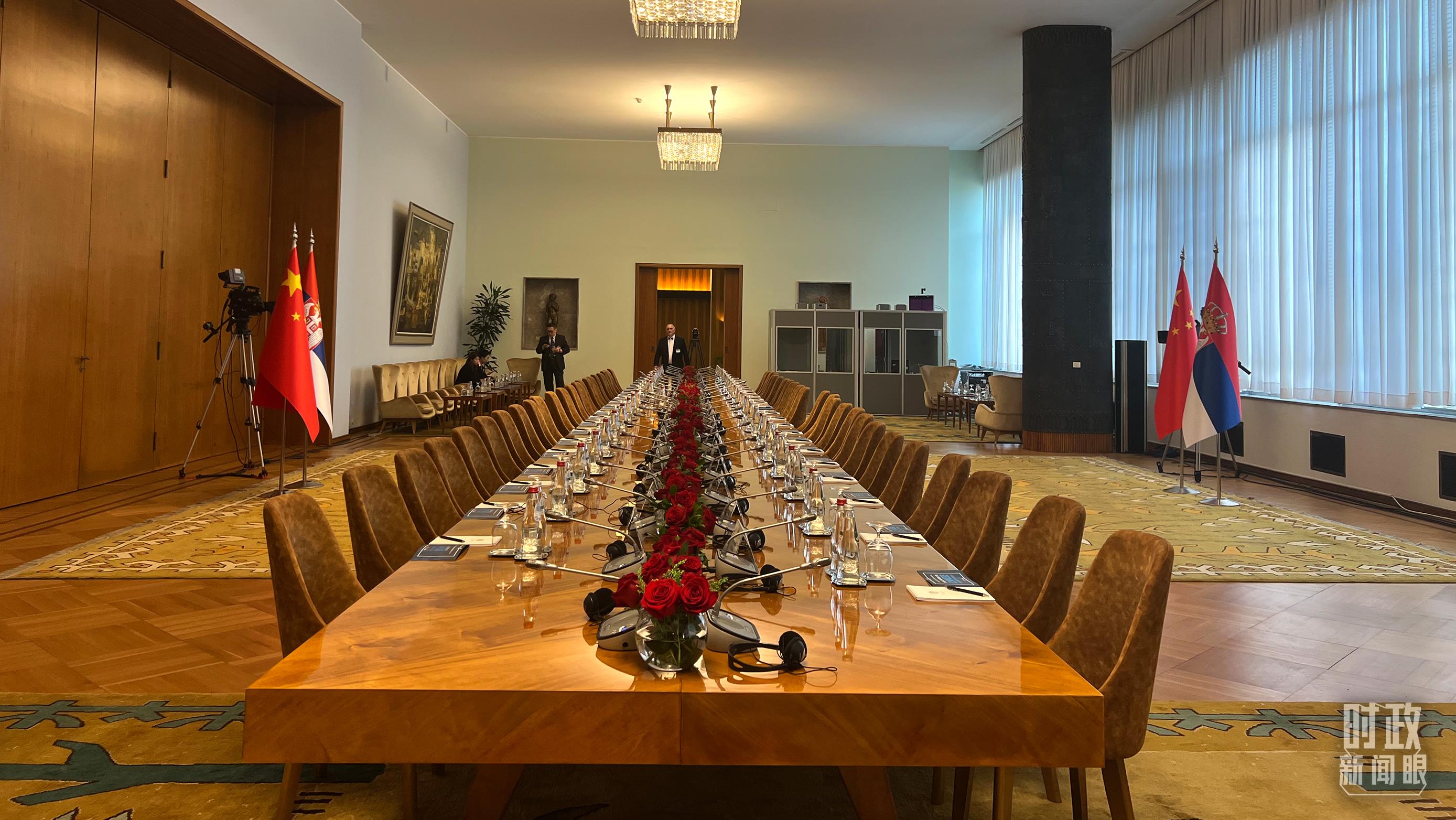 5月8日上午,習(xí)主席同武契奇總統(tǒng)舉行大范圍會(huì)談,這是會(huì)談開始前的現(xiàn)場。(總臺(tái)央視記者張洛嘉拍攝)