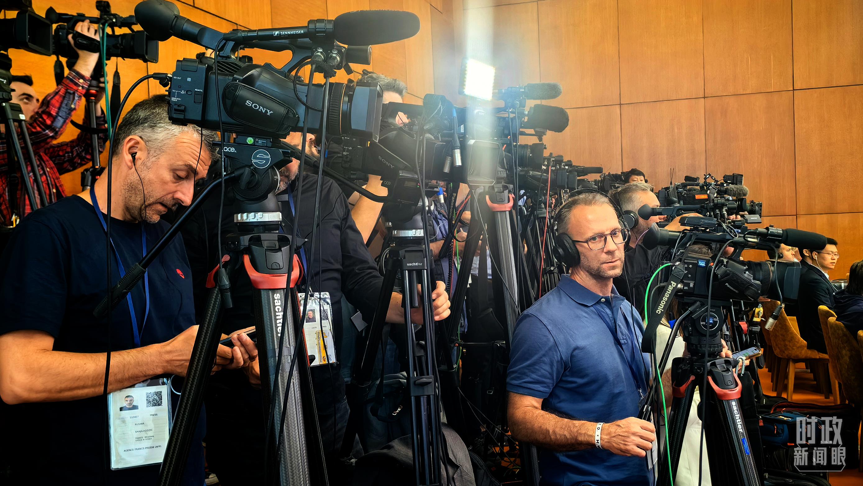 習(xí)主席同武契奇總統(tǒng)會(huì)談后共同會(huì)見記者,會(huì)見現(xiàn)場記者云集。(總臺(tái)央視記者荊偉拍攝)