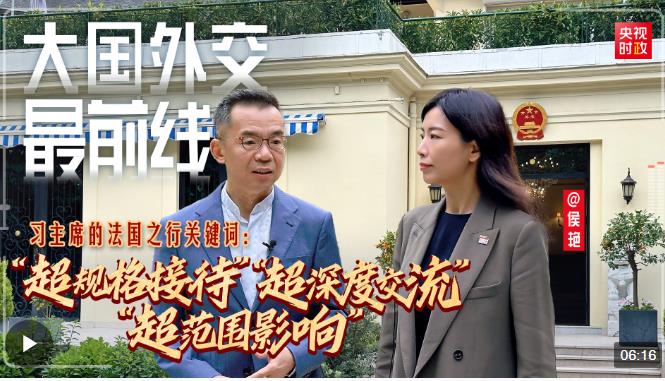 當(dāng)?shù)貢r(shí)間5月7日,國(guó)家主席習(xí)近平成功結(jié)束對(duì)法國(guó)的國(guó)事訪問(wèn)。作為習(xí)近平主席今年首次出訪的開(kāi)篇之作,這次國(guó)事訪問(wèn)取得了怎樣的成果?又有哪些亮點(diǎn)?“大國(guó)外交最前線”在中國(guó)駐法國(guó)大使官邸采訪中國(guó)駐法國(guó)大使盧沙野,共同回顧一次“超規(guī)格接待”“超深度交流”“超范圍影響”的國(guó)事訪問(wèn),共同期待“雙向奔赴”的中法關(guān)系越走越近。