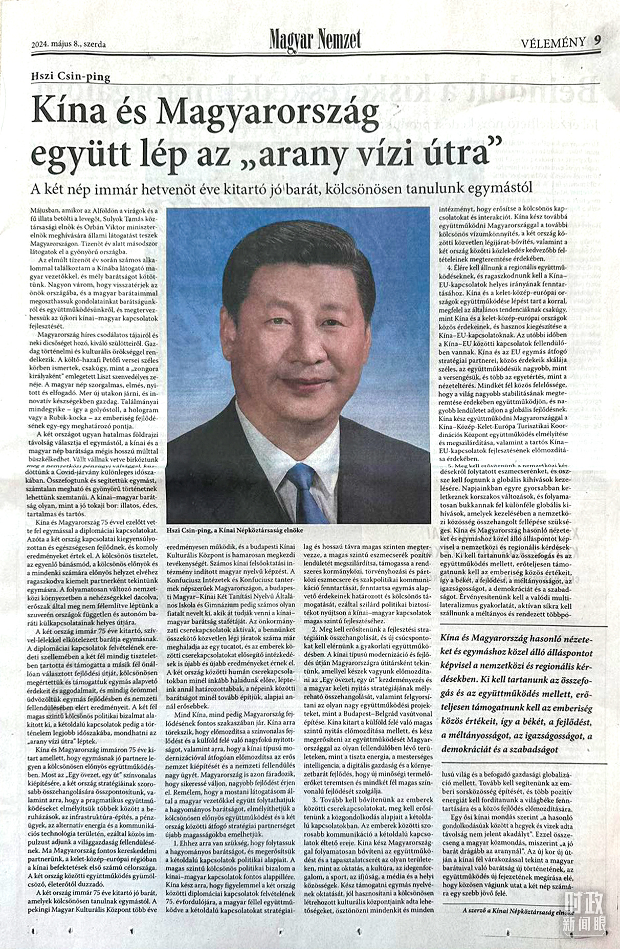 在此訪之際發(fā)表的署名文章中,習(xí)近平主席表示,中方愿以兩國(guó)建交75周年為契機(jī),同匈方從戰(zhàn)略高度和長(zhǎng)遠(yuǎn)角度對(duì)雙邊關(guān)系作出頂層設(shè)計(jì)。