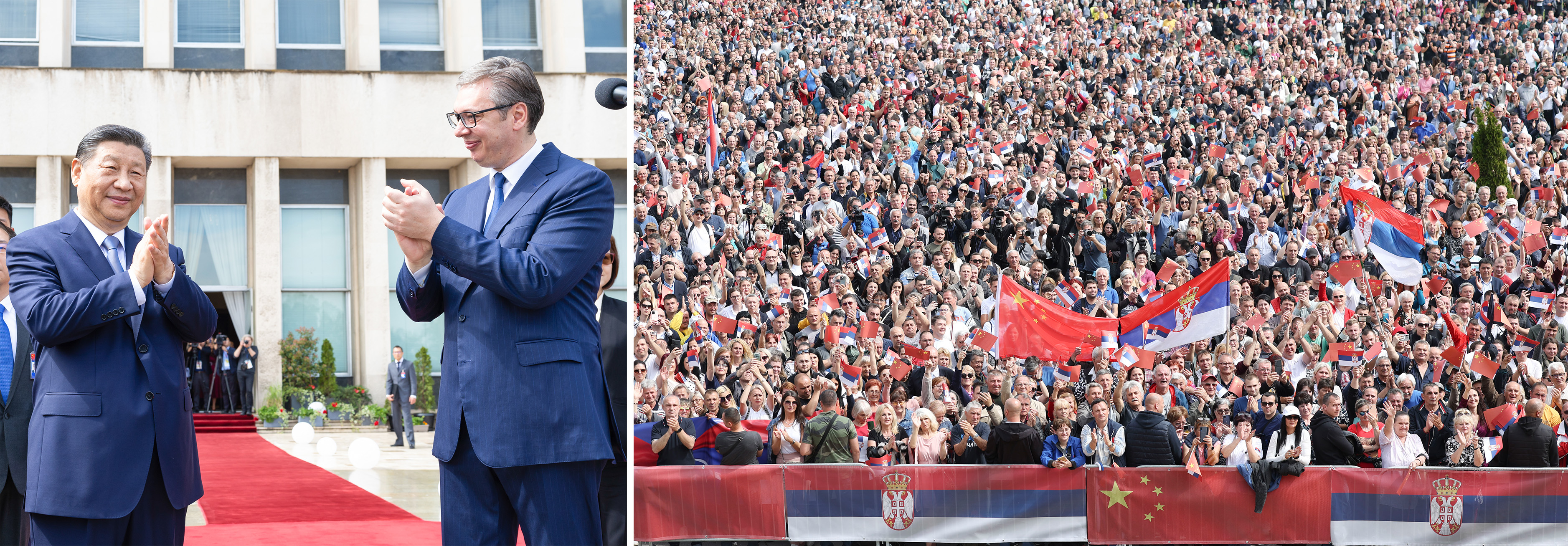訪問(wèn)塞爾維亞,習(xí)近平主席宣布中方支持新時(shí)代中塞命運(yùn)共同體建設(shè)的首期6項(xiàng)務(wù)實(shí)舉措。武契奇總統(tǒng)表示,塞方堅(jiān)定支持并將積極參與習(xí)近平主席提出的全球發(fā)展倡議、全球安全倡議、全球文明倡議,同中方密切多邊戰(zhàn)略協(xié)作,共同反對(duì)霸權(quán)強(qiáng)權(quán),維護(hù)聯(lián)合國(guó)憲章宗旨,捍衛(wèi)國(guó)際公平正義。
