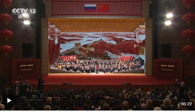 習近平指出,中俄兩國民族音樂都是世界文明百花園中的絢麗花朵。今晚這場音樂盛宴必將成為中俄文化交流互鑒的精彩華章。讓我們以“中俄文化年”為契機,以慶祝建交75周年為新起點,弘揚友好,攜手前行,為中俄新時代全面戰(zhàn)略協(xié)作伙伴關(guān)系增光添彩,共同開創(chuàng)中俄友好新的美好未來!