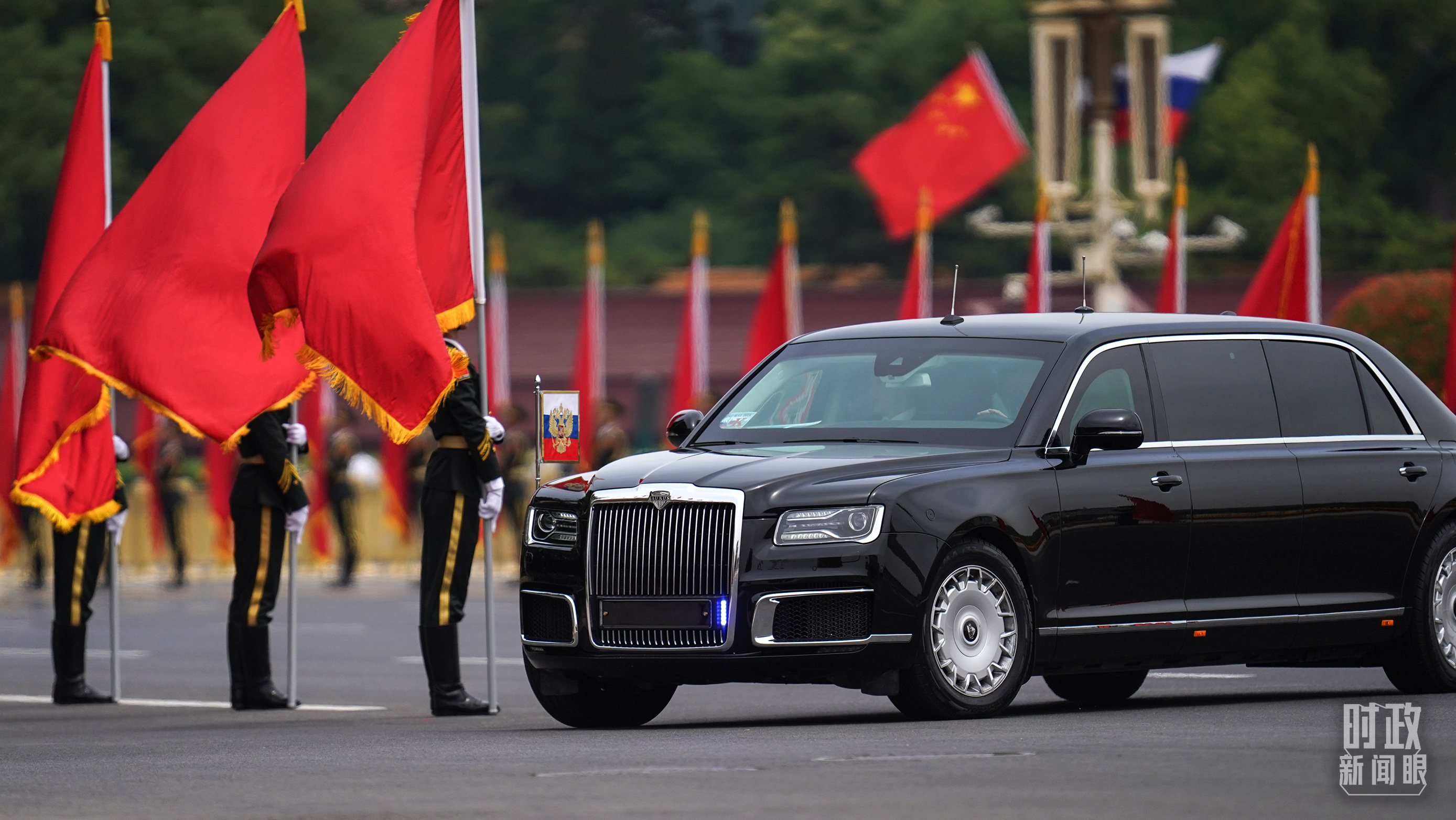 普京總統(tǒng)乘車抵達(dá)歡迎儀式現(xiàn)場。(總臺(tái)國廣記者李晉拍攝)