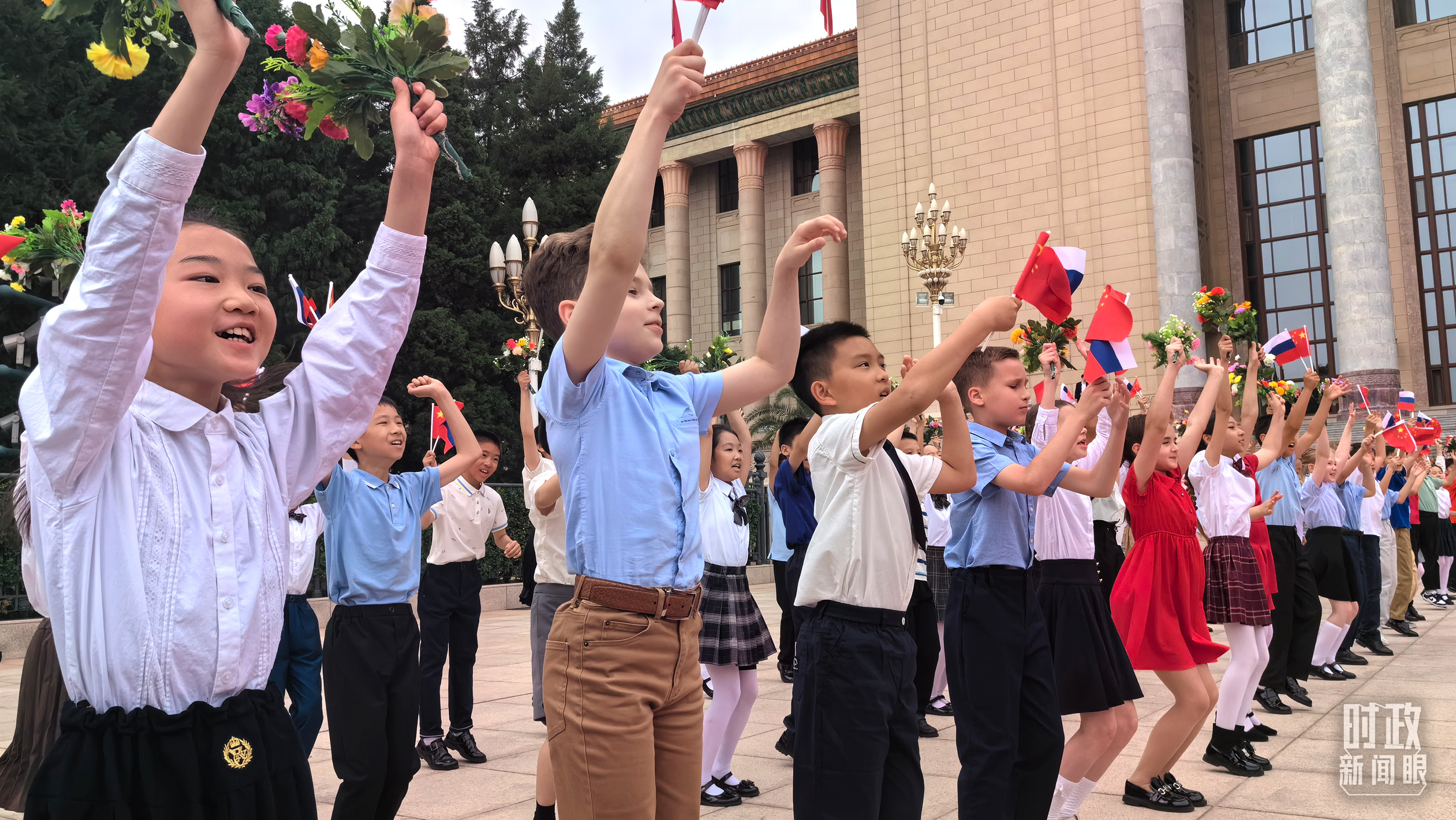 歡迎儀式現(xiàn)場的中俄少年兒童。(總臺(tái)央視記者王子杭、段德文拍攝)